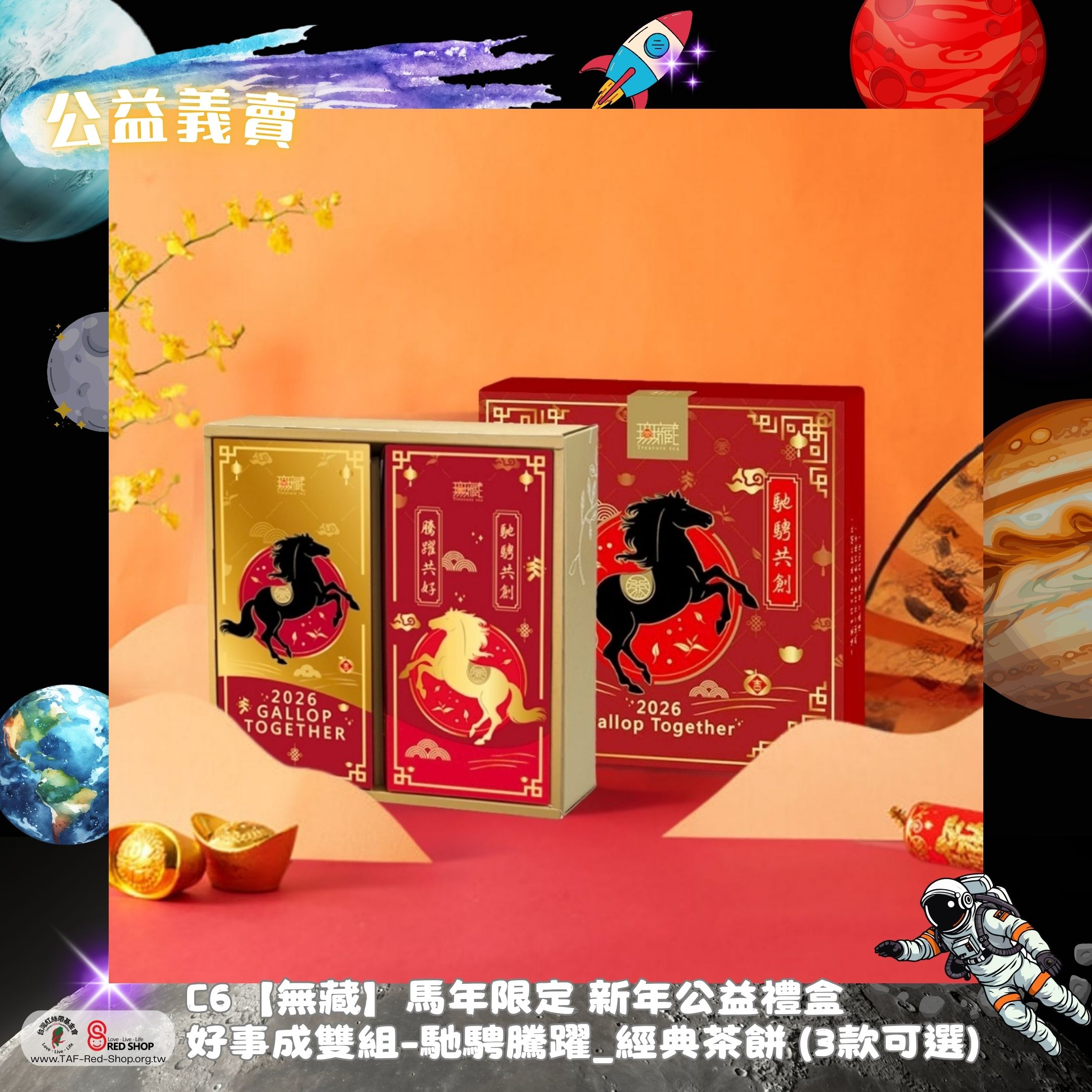 C6【無藏】馬年限定 新年公益禮盒 好事成雙組-馳騁騰躍_經典茶餅 (3款可選)