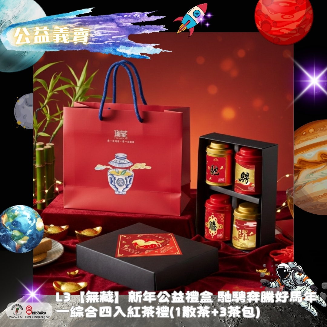 L3【無藏】新年公益禮盒 馳騁奔騰好馬年一綜合四入紅茶禮(1散茶+3茶包)